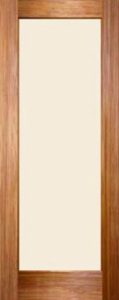 Model PK.P1. This is combination door leaf, a 6 mm clear glass sealed with silicon and solid wood panel, frame size 35 mm thick and 110 mm wide. The wood and finishing according to your choice.