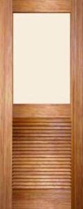 Model PK.L1. This is combination door leaf, a 6 mm clear glass sealed with silicon and solid wood louvre, frame, size 35 mm thick and 110 mm wide. The wood and finishing according to your choice.